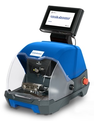 Electronic key cutting machine for automotive high security and double-sided edge cut keys.