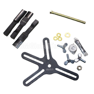 GM-51892 consists of a special design four-arm bridge with three legs, a forcing screw, a thrust bearing, a washer, and a nut. This universally adjustable tool is used with a hydraulic press to compress the 2-9 clutch piston spring in the 9T50 transmission and the various size clutch piston springs and piston dams in 10L80 and 10L90 transmissions.