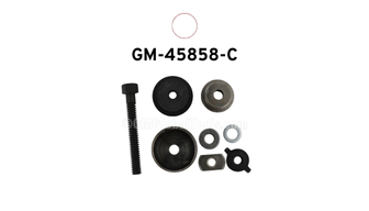 Two updated adapters, GM-45858-2C and GM-45858-4B, were developed to fit the 8.0" front axles in 2019-newer full-size trucks. These adapters superseded GM-45848-2B and GM-45858-4A, and back-service GMT800, GMT900 and K2XX trucks. Adding them into the current GM-45858-B supersedes the complete kit to GM-45858-C for New Dealer kits and any future purchases. 8.25" axles are side-load, and have no access to drive the pinion bearing cup from the carrier. 8.0" front axle has no clearance to get under the bearing cups in the pinion bore. Components from GM45858-C fit through the pinion bore, and engage the bearing cups to remove and install them. Unapproved methods will damage the carrier or bearing cups.