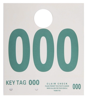 • This 3-part tag has perforated key tag and claim check.