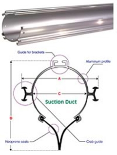 - The rail incorporates a neoprene seal that closes tight when the system is on - allowing the effective removal of exhaust fumes by the ventilation crab from any position along the rail.