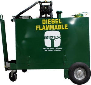 The Tempo 100-gallon diesel tanker with UL listed air operated pump drains, filters, stores and refills fuel tanks. Our tanks are designed to minimize the risk associated with repair operations on fuel tanks, fuel gauges and a variety of other fuel system procedures. They off safer storage by reducing fumes plus several grounding devices to safely dissipate electrical static discharge.